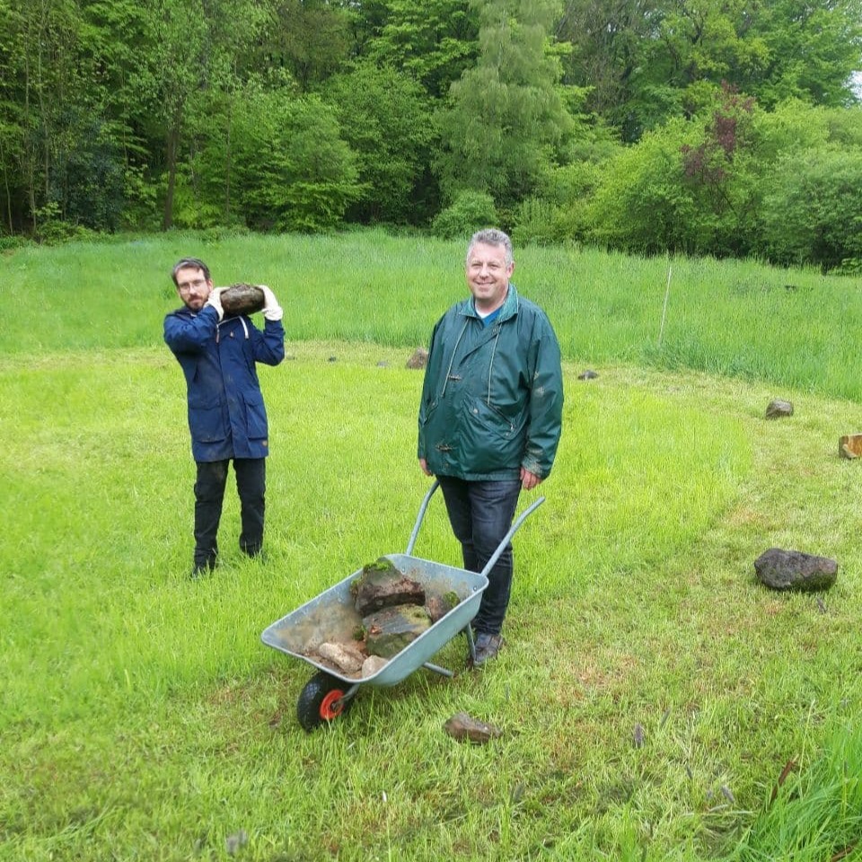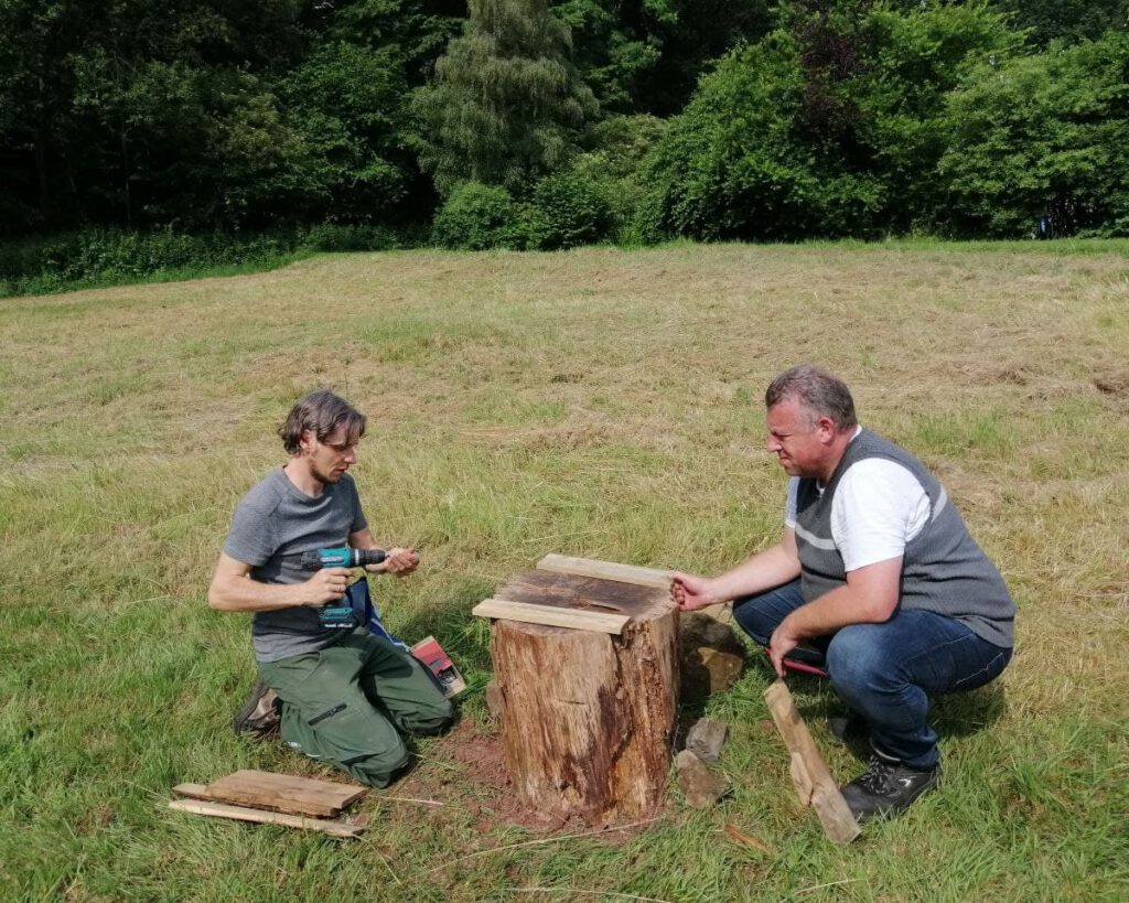 Im September 2019 lernte Dennis bei einem Vortrag über Geomantie den Imker Jörg Brosterhus aus Steinheim kennenlernte. Ein Jahr später fragte er ihn, ob er bei seinem aktuellen Buch mit einem Foto zu dem Bienengedicht „Schwarmzeit“ mitwirken wolle. So kam es, dass Jörg neben einem Foto auch die Idee einen Siebenstern zu errichten mitbrachte. Es handelt sich dabei um ein altes Imkereiverfahren, welches bereits im alten Ägypten bekannt war. Dennis nahm die Idee begeistert auf und rief daraufhin gemeinsam mit seiner Frau Anne das Projekt „Siebenstern Leopoldstal“ ins Leben. Es fand sich gleich ein geeigneter Standort auf der Wiese hinter der Evangelischen Kirche am Eichenweg. Auch das Projekt-Team stand schnell mit dem Imker Jörg Brosterhus, der Naturschutzbeauftragen vom Heimatverein Gesine Bahn, Sabine Bergmann von der Sa Bienen Imkerei Schloss Hamborn und dem Jungimker Christian Schnell. Nach zwei gemeinsamenTreffen wurden bereits die ersten Aktionen vor Ort sichtbar.