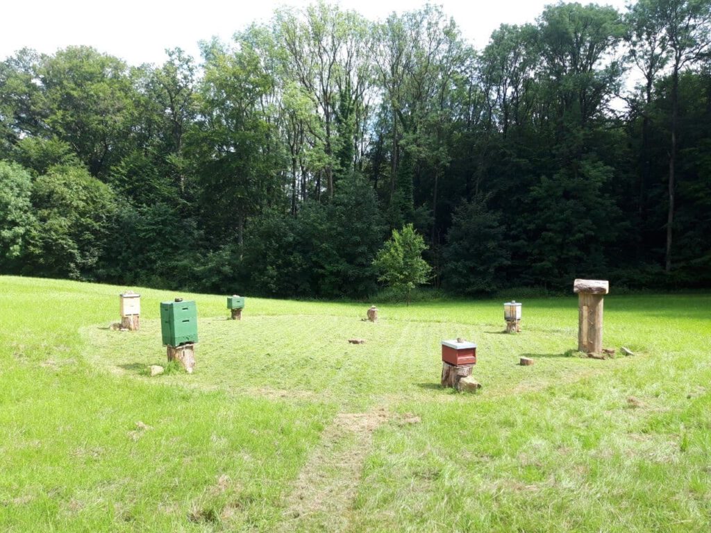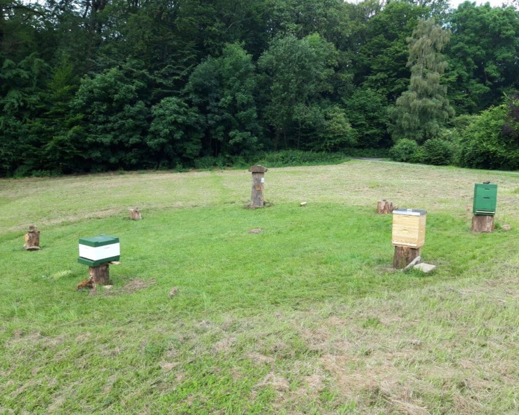 Aktuell gibt es 1500 registrierte Siebensterne weltweit, davon allein in Deutschland ca. 400. Die Beobachtungen anderer Imker und Wissenschaftler haben viele positive Erkenntnisse gebracht, von denen wir uns selbst überzeugen wollten. Das grundlegendste Ziel ist die Verbesserung des Bienenwohls. So soll die starke Energie des Siebensterns die Varroa-Milbe bereits nach kurzer Zeit vertreiben, da diese das hohe Schwingungsniveau nicht aushält. Dies hätte zur Folge, dass auf die schädlichen Säurebehandlungen verzichtet werden kann. Auch berichten viele Imker, dass die Bienenvölker im Siebenstern viel friedfertiger und gesundheitlich stärker sind. Wir haben unterschiedliche Bienenbehausungen eingesetzt, um möglichst vielfältige Beobachtungen machen zu können. Darunter auch eine Klotzbeute von der Zeidlerei aus Schloss Hamborn. Wir möchten dadurch auf diese alte Methode des Imkerns aufmerksam machen.