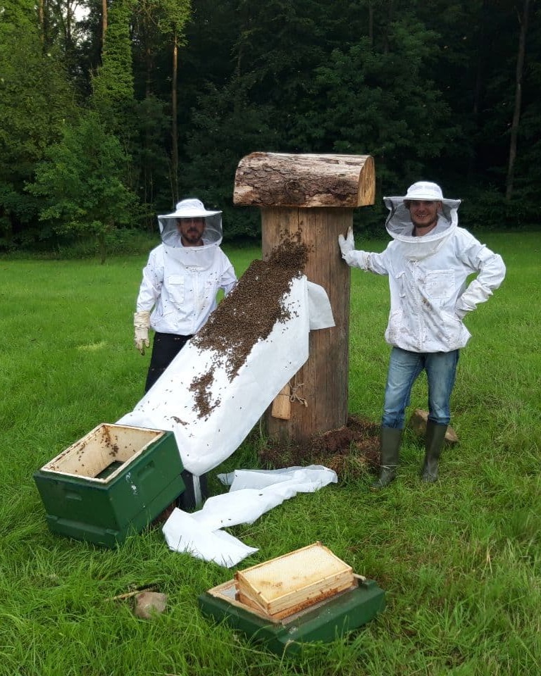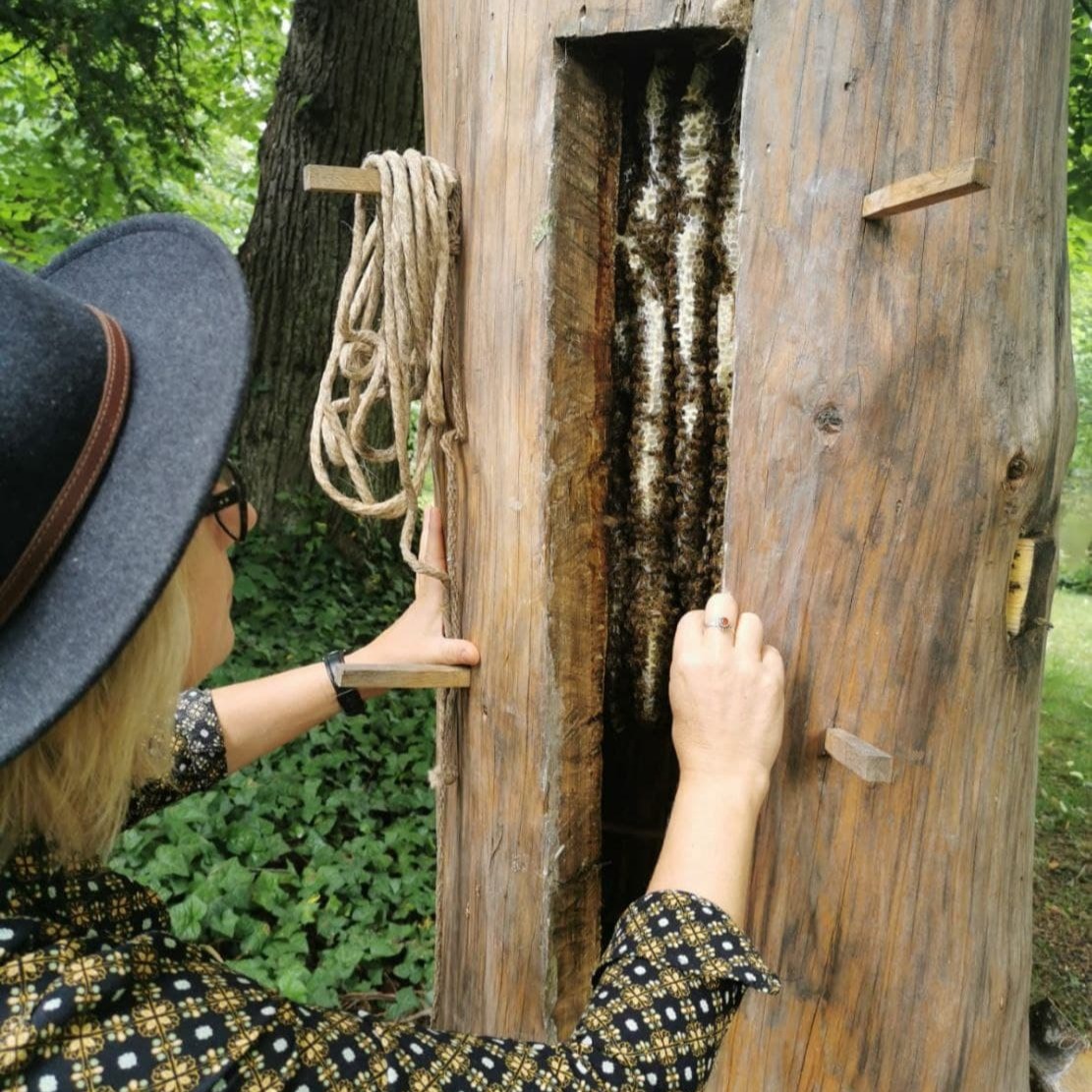 Im Mittelalter kümmerten sich die Zeidler, die in Zünften organisiert waren, um die Bienen in den Zeidelbäumen. Die Zeidlerei war ein sehr angesehener Beruf und die Honig- und Wachsgewinnung ein bedeutender Wirtschaftsfaktor. Linden, Kiefern und Eichen wurden mit Spezialwerkzeugen so ausgehöhlt, dass sie ohne Schaden zu nehmen weiterleben konnten. Wo dicke Bäume fehlten, wurden nach natürlichem Vorbild künstlich ausgehöhlte Baumausschnitte, sprich Klotzbeuten in die Bäume gehängt oder auf den Boden gestellt. In Europa war die Zeidlerei bis Mitte des 19. Jahrhunderts weit verbreitet. Sie verschwand in Deutschland mit dem Aufkommen des importierten Rohrzuckers und überlebte nur in den Tiefen des Ural, in Baschkirien. Die Zeidlerei in Schloss Hamborn lässt dieses alte Handwerk mit hohem Engagement wieder aufleben. Bei der heutigen Bienenhaltung in den Klotzbeuten wird kein Honig geerntet und die Bienen vermehren sich ausschließlich auf natürliche Art über den Schwarmbetrieb. Ein wichtiger Aspekt ist dabei die Renaturalisierung der Bienen und die Stärkung des ökologischen Gleichgewichts. Siehe mehr unter https://www.sabienenimkerei.de